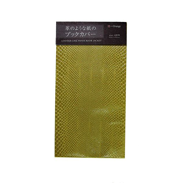 革のような紙のブックカバー【ヘビ】オリーブ(文庫判サイズ)