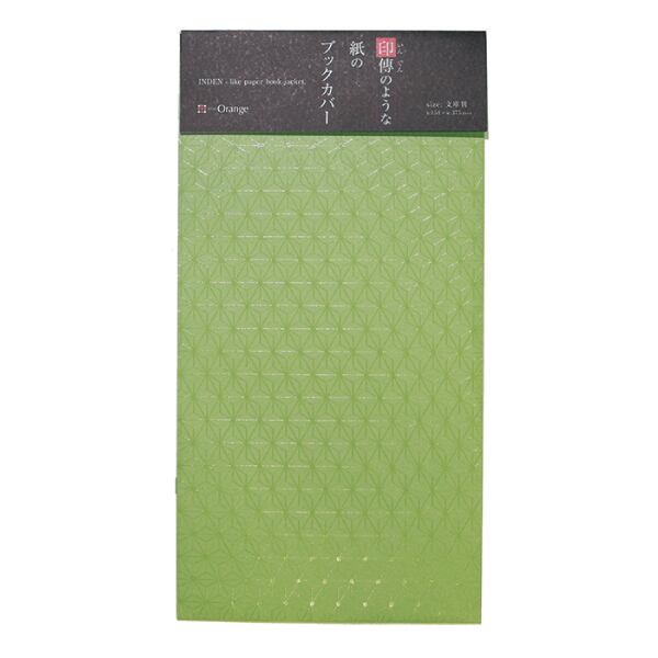 印傳のような紙のブックカバー【麻の葉】若葉